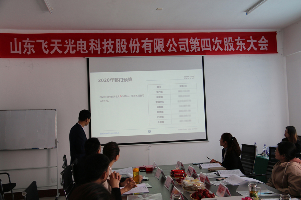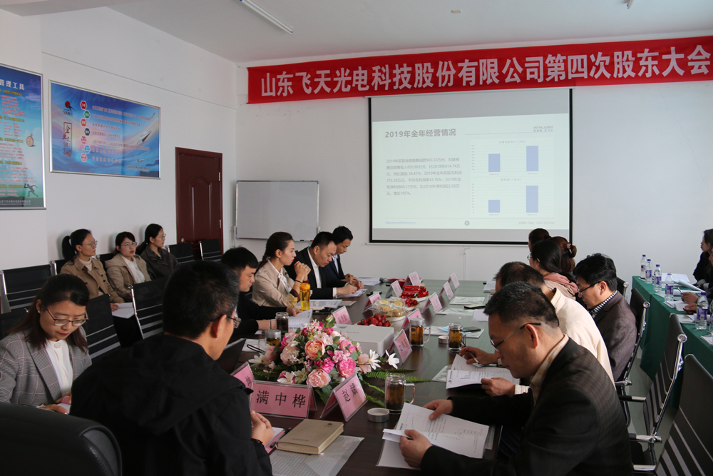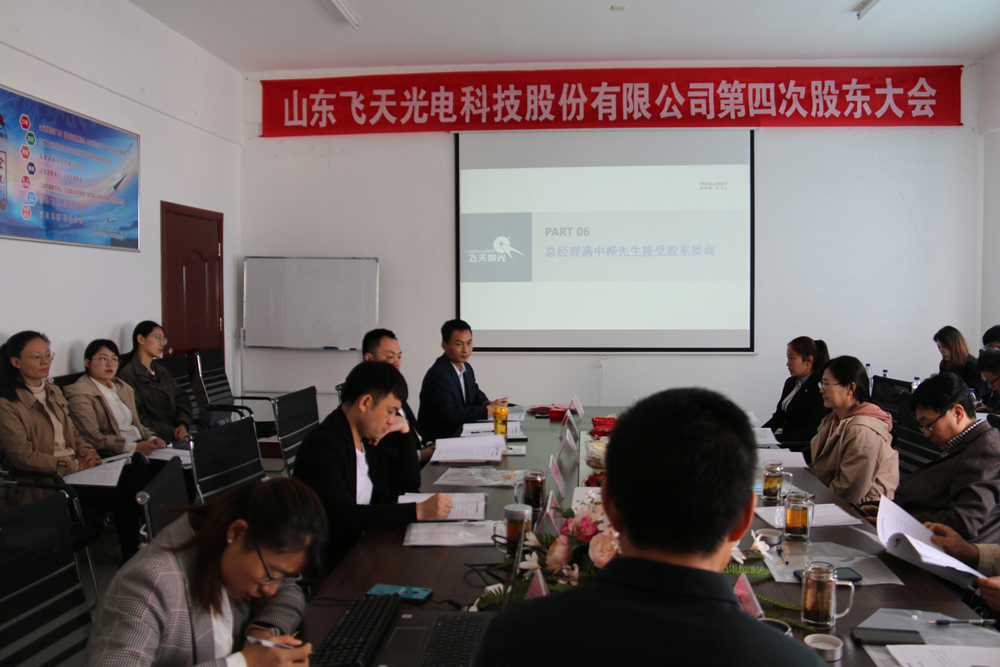 值此一年好景,飞天光电2020年股东大会在公司本部召开。会议由公司董事会召集,总经理满中桦主持,外部股东赵斌、朱靖、陈贵勤、宋华东,内部股东王艳、满忠敏、付正伟、关楠楠、宋士敬、毕钰丽、程明航、董冲、付正伟、高静静、胡杰、黄鹤菲、刘灿、刘耀诚、吕彦颖、商玲、孙凤虎、孙海洋、俞雪强、赵瑞、侯坤均出席了现场会议。