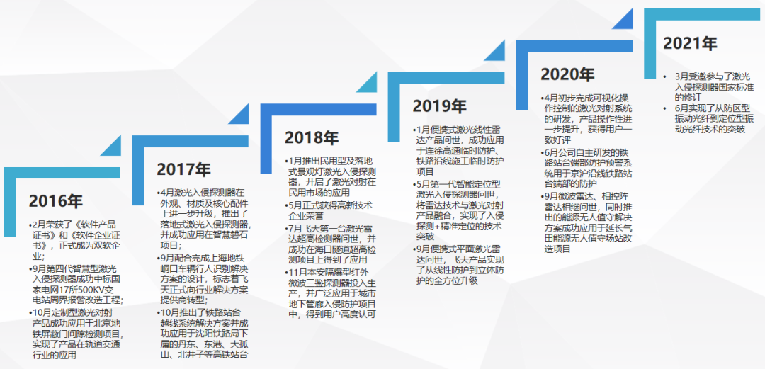 时光荏苒,弹指一挥间,山东飞天光电科技股份有限公司已经走过了十二年的创业征程。作为中国早期安防行业的代表性企业,飞天激光凭借10余年的技术研发、产品设计和成套设备制造经验,先后荣获社会各界认可。自2009年公司成立以来,12年的发展历程见证了公司的成长轨迹。