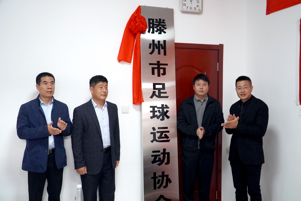 会议进行到最后一步,由各位领导共同举行揭牌仪式,足球协会正式成立。在锣鼓喧天、鞭炮齐鸣的衬托下,滕州市足球运动协会成立大会暨第一届会员大会圆满成功。