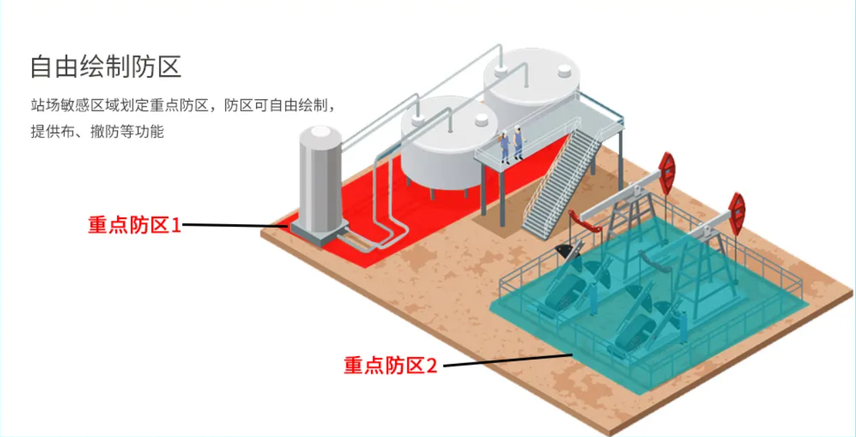 先来说说传统安防产品在面对能源行业的弊端,首先就是无法实现可视化报警,传统产品只能实现声光报警,无法具体得知入侵者做了什么,给后续的抢修工作带来难度。其次石油化工行业环境复杂,安防产品极易受环境影响产生误报,给安保管理工作带来难度,使得工作效率低下。最后一点也是最主要的一点,一般工业厂区面积大、点多面广、环境恶劣,安防设备很容易出问题,给生产和维护人员带来巨大的麻烦,严重时甚至会危及生产安全。