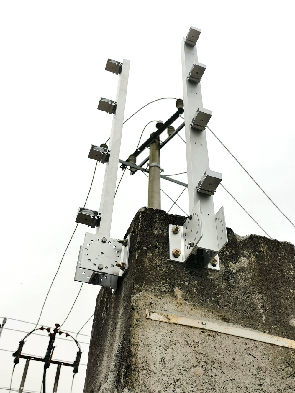 首先是安装前的准备工作,为提高报警的可靠性和有利于报警时准确定位,防区划分的距离应不大于40m。每个防区中间每隔3~5m应安装一根支撑杆,在拐弯处应安装受力杆。所有控制杆、受力杆、支撑杆应固定安装且牢固,在不适宜安装张力围栏的场所(如边门、墙体不牢固处等)应安装主动红外探测器,以确保整个系统无安防死角。