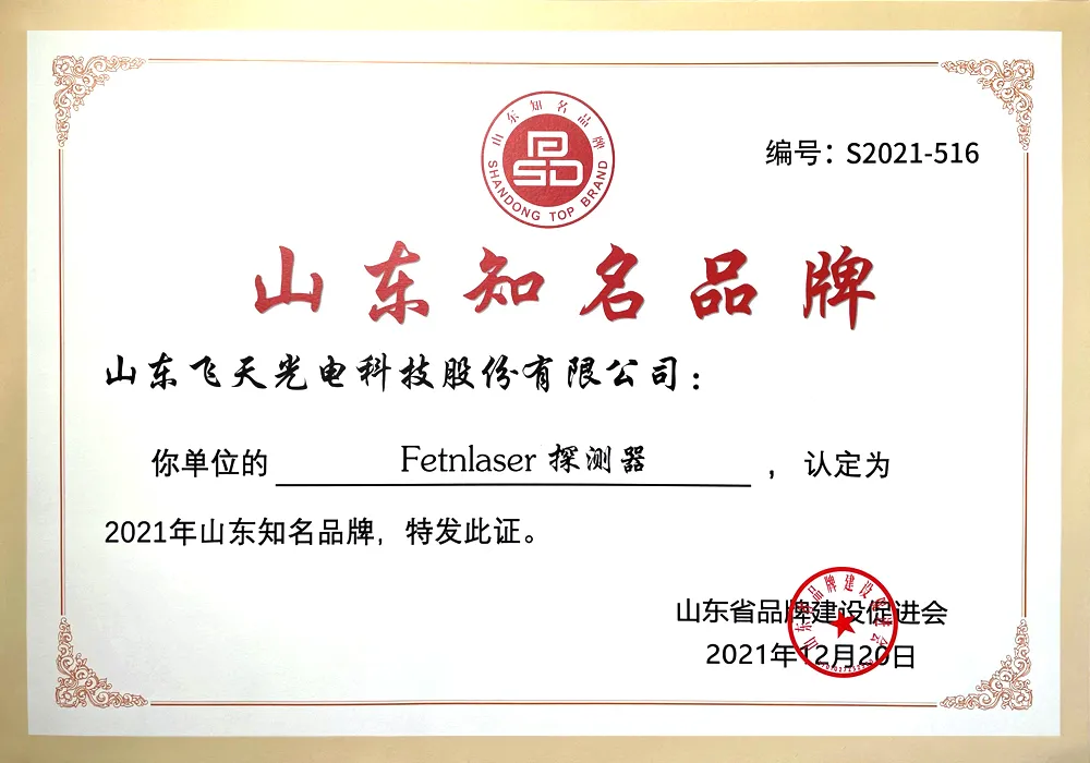 2021年是充满挑战、有价值、有收获的一年。飞天光电深入贯彻落实山东省委省政府关于实施新旧动能转换重大工程的精神要求,助力质量强省、品牌战略实施和品牌高端化进程,以激光探测器项目荣获2021年度山东知名品牌认定!