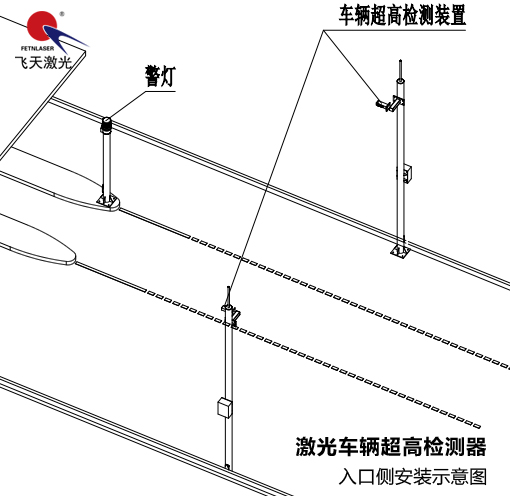 事实证明,防撞架并不能从源头上解决车辆超高带来的隐患。为避免此类情况的发生,有的采用人工检测,一方面浪费人力也容易造成疏漏,另一方面检测数据并不可靠,个别超限车辆可能会成为漏网之鱼,得不到有效控制和劝返,这样就给交通安全事故埋下了隐患。为此,飞天激光研发设计了一套超限车辆检测报警系统,该系统采用激光检测装置在车辆通过时准确检测是否超限,一旦发现超限车辆,检测设备会向控制设备发出语音报警和声光报警,提醒外勤人员及时处理,同时将报警信息通过GSM短信模块发送到稽查手机号码上,有效避免超高车辆进入高速公路,消除交通安全隐患。