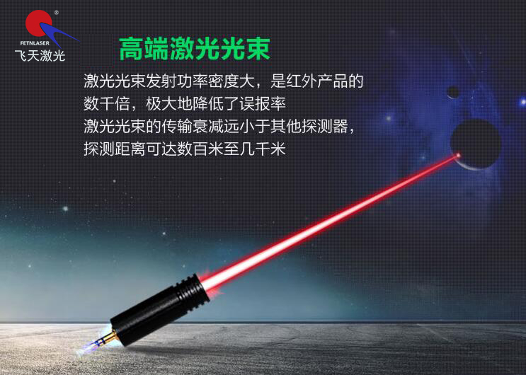 山东飞天光电科技股份有限公司经过多年攻关努力,成功解决了激光稳定性、安全性、适应性等问题,极大地拓展防盗报警领域的应用空间,使产品在探测距离,抗干扰,稳定性各方面都优于传统的主动红外对射、红外光栅等探测器,因此一经面世即受到各界用户的广泛应用和肯定,目前已经成功应用于机场、地铁、国界线、大型项目重点设备保护机场、各种训练场、工厂周界、养殖场等。是现代安防领域重要的入侵探测器。