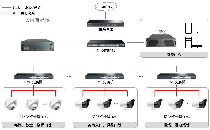 随着当前平安校园建设迈向高清网络化监控的趋势发展,校园安防技术系统也随之更新换代、快速发展。视频监控系统简单的说是通过图像监控的方式对校园重点区域和主要出入口作一个实时、远程的视频监控的安防系统。系统由前端摄像机、中心控制系统和存储系统等组成。